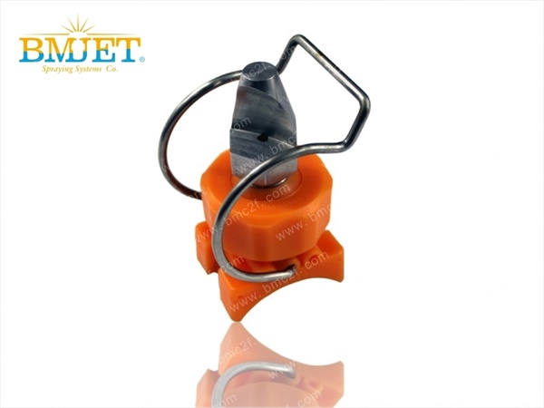 CT6530夹扣喷嘴有喷嘴底座、金属弹簧夹、可拆螺纹帽盖和喷嘴可调球头四个部分组成而成,可调球形喷嘴底座有三孔位预留,这个预留可以配合双夹扣喷嘴和单夹扣喷嘴调节管子外径不同时的夹紧度,也可以因为喷淋水管的尺寸大小防止漏水的现象发生,这一点博美喷雾已申请专利。